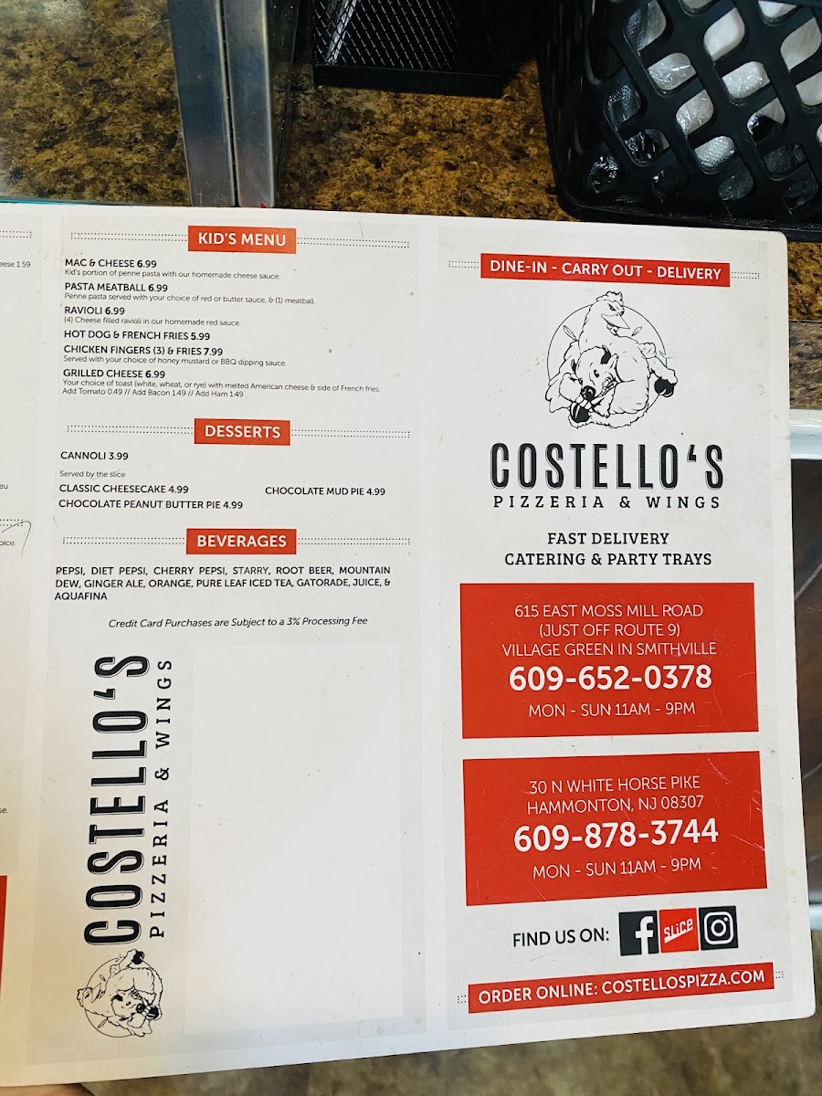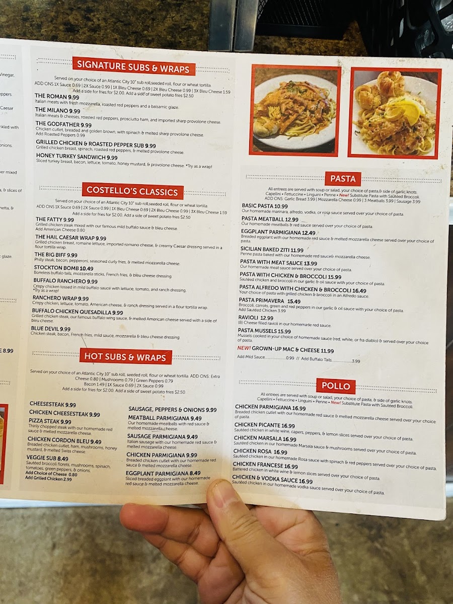 Welcome to Costello's Pizzeria & Wings, a gem located in Smithville, NJ. Known for its mouthwatering menu, this eatery features a delightful array of options, from signature subs to delectable chicken dishes. For sandwich lovers, the Roman and Milano sandwiches deliver bold Italian flavors, paired beautifully with fresh ingredients. Their standout pizza has garnered rave reviews, with patrons praising its generous topping portions and perfectly soft dough that's a pleasure to eat.
